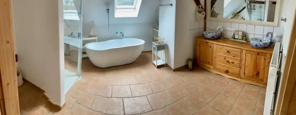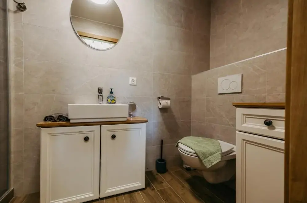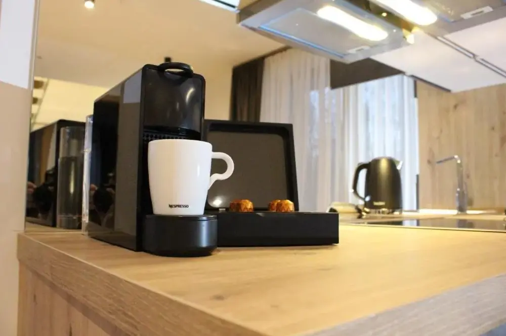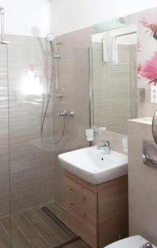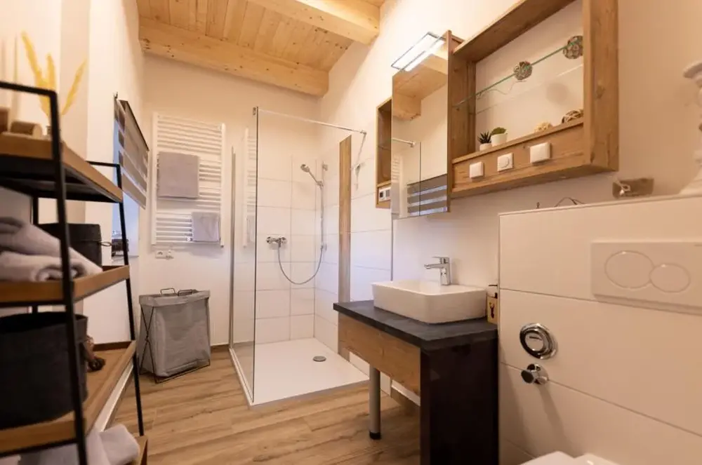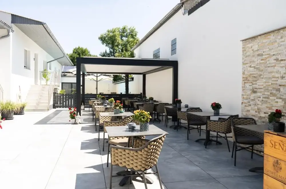 关于 KRACHER Familienapartment Landhaus No 4 的更多信息位于奥地利雷尼茨(Rechnitz)的Weingut Straka,坐落在15号火车站大街,周边环境安静舒适。酒庄兼客栈融合了现代设计与温馨乡村风格,室内装饰考究、色彩协调,木质家具和软装搭配得当,既不失时尚感又充满暖意。每间房间都备有独立茶水机,可随时泡上一杯咖啡或红茶休憩。床铺宽敞且无拘束感,窗帘加卷帘结合使用确保黑暗度极佳,让您睡眠更加沉浸放松。卫生间空间宽敞明亮,镜子带采暖功能避免起雾问题;此外还有专用停车场供住客使用。院子里有一处小型休闲角落及桌椅座位区域(附烟灰缸),适合轻松聚会或独享清凉。酒庄自产葡萄酒品质优良,《Tuto Gas》系列气泡酒口碑颇好——部分游客还购回作为纪念品尝鲜。距离附近景点如伊森沃朗博物馆(10公里)、古堡群(布尔格·施林特、洛肯豪斯)以及滑雪索道(最远31公里)均在方便驾车范围内,维也纳国际机场则需开车约87分钟到达。雷尼茨本地餐厅Basiscafé