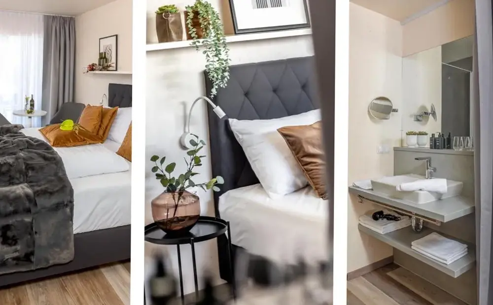 关于 Apartment Mia 的更多信息迪·阿卡德(Die Arkade)位于奥地利布尔根兰州波彭多夫(Poppendorf),坐落在10号花园大街,周边环境安静舒适。这处住宿以现代设计和精心装修见长,房间内的家具与床铺都经过仔细挑选,确保居住体验简洁又舒适。户外还有一个私密后院阳台,是观看日落、品尝当地葡萄酒或休憩放松的绝佳场所——无论是清晨还是傍晚,这里都是一个难得的好去处。厨房配备齐全,可满足自助烹饪需求;此外,物业提供了详尽的使用说明及垃圾分类指引,方便入住者顺畅生活。附近步行即可抵达纳皮奇亚餐厅(Pizzeria Napoli)、古特&弗里什农庄(Gut & Frish),距离摩格斯多夫镇中心仅5分钟车程。若想前往国王村天然浴池(Naturbadesee Königsdorf),也只需要短途驱车数分钟即可到达。住客评价中提到Wi-Fi信号稳定快速,整体卫生状况良好且符合图片描述无误。此外,迪·阿卡德为家庭出游提供专用房