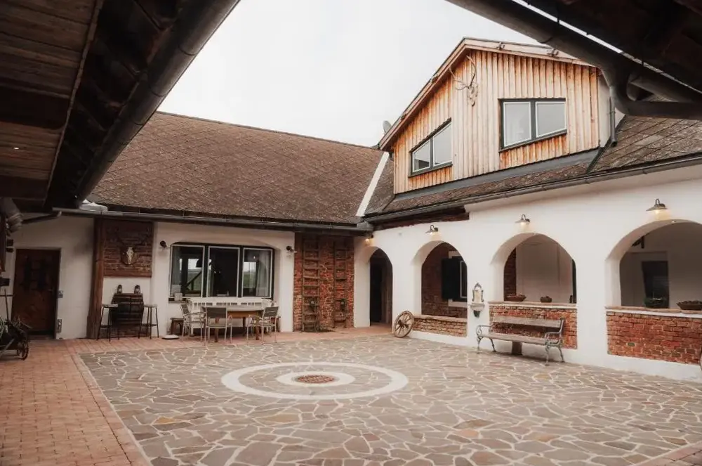 Der Südburgenland Vierkanthof liegt zentral in Doiber, Hauptstraße 16, und bietet mit seinem traditionell-modernen Interieur sowie einer gut ausgestatteten Infrastruktur Raum für Gruppenaufenthalte. Der Innenhof bildet dabei einen besonderen Mittelpunkt: Hier steht nicht nur ein Grillplatz zur Verfügung, sondern auch eine offene Feuerstelle, die bei jedem Wetter zum Verweilen einlädt.